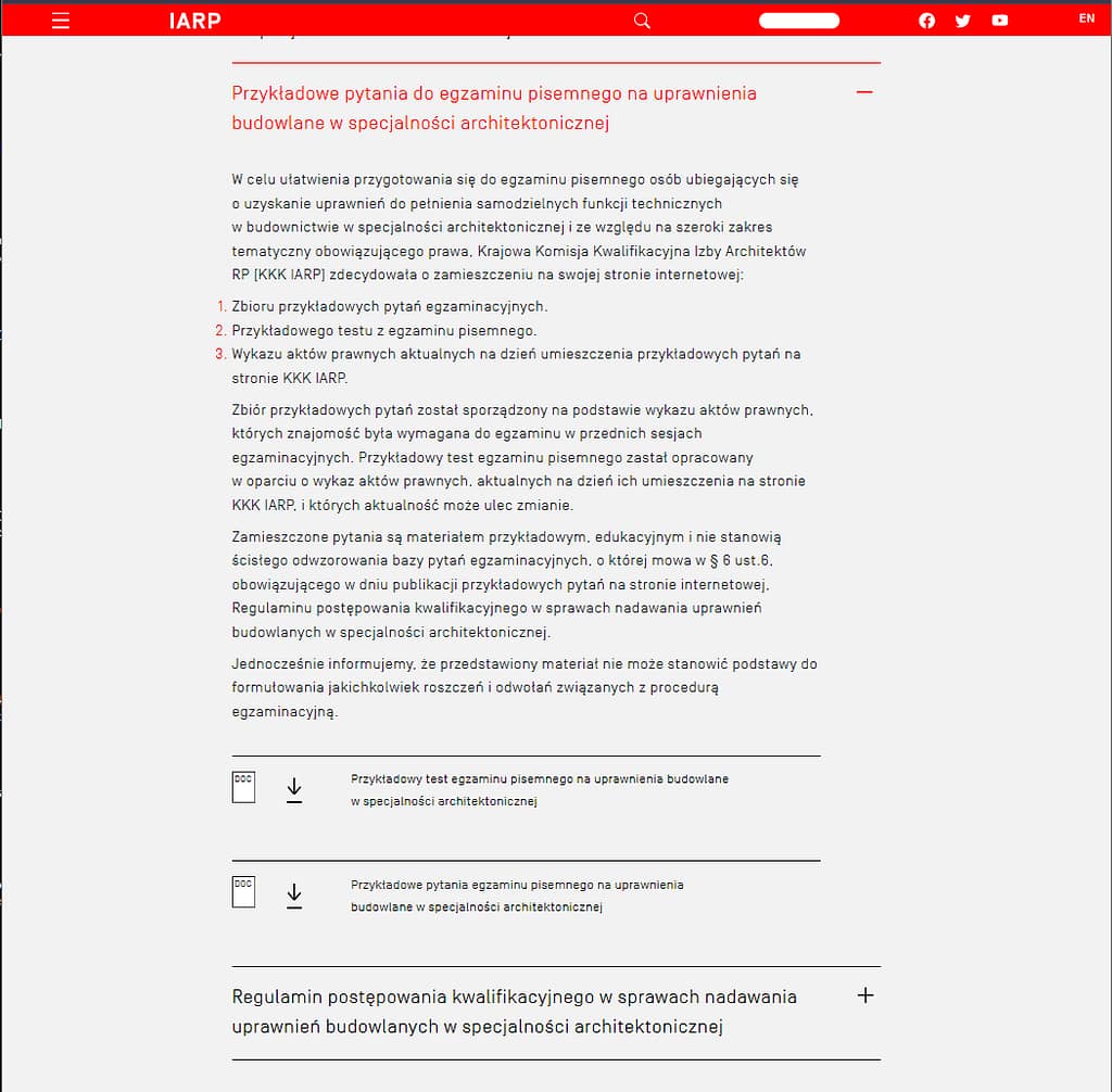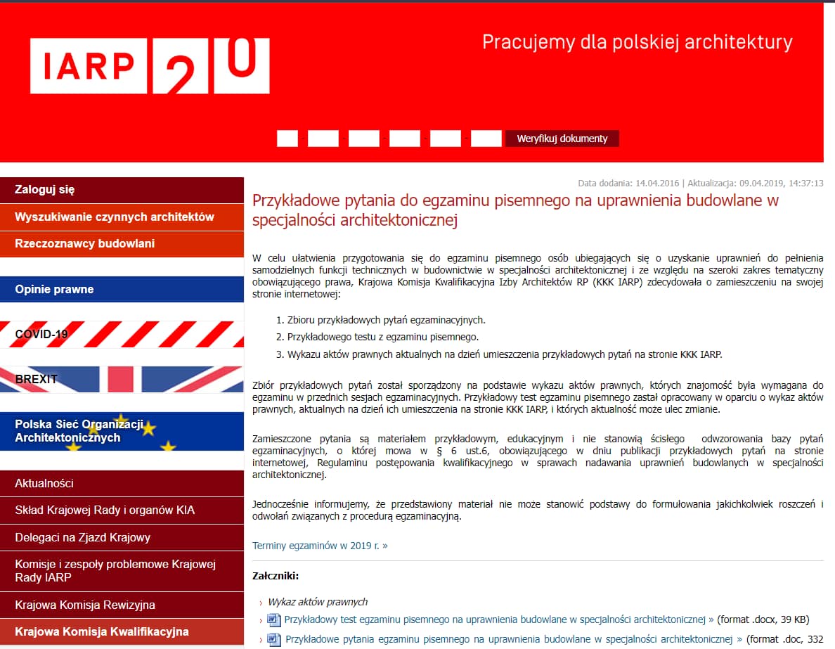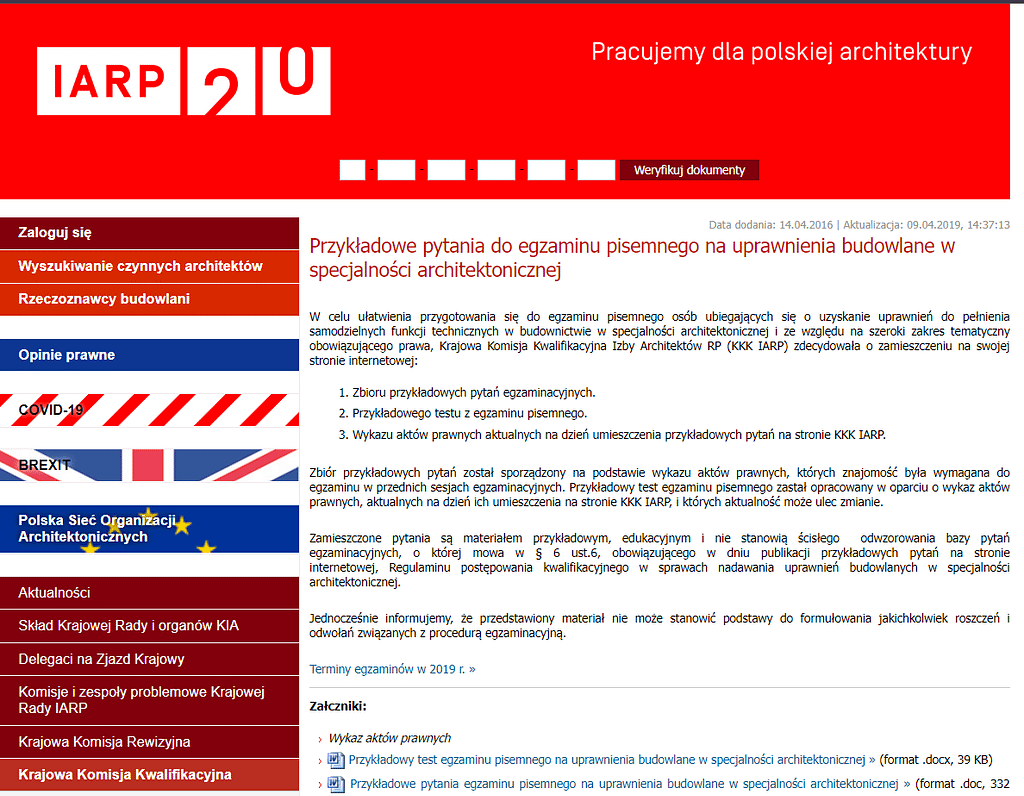 My zrobiliśmy to za ministerstwo i tak, w branży architektonicznej postępowanie w sprawie uprawnień zawodowych prowadzi samorząd zawodowy – Izba Architektów RP.