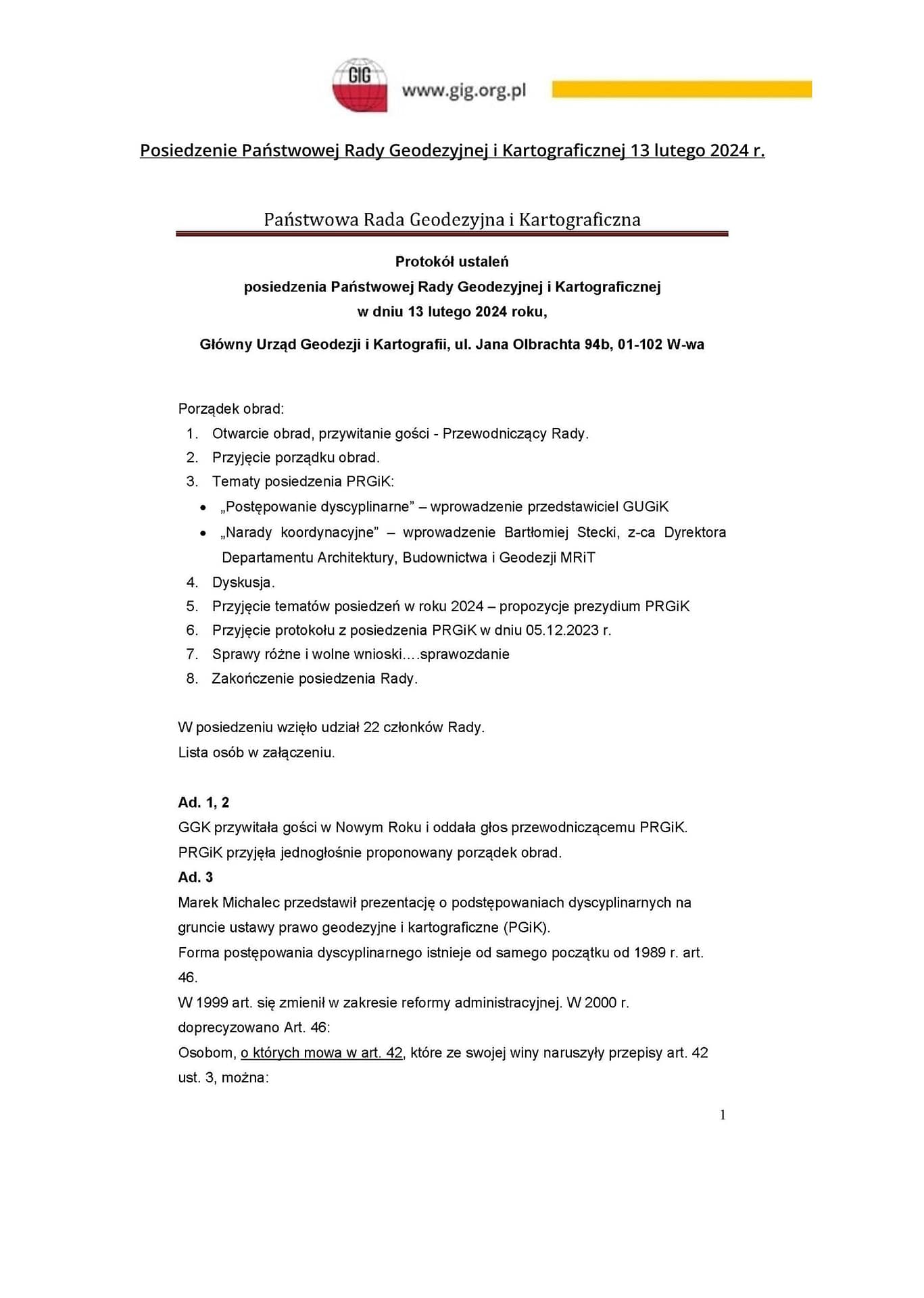 z posiedzenia Państwowej Rady Geodezyjnej i Kartograficznej, która odbyła się 13 lutego 2024 r. w Głównym Urzędzie Geodezji i Kartografii przy ul. Jana Olbrachta 94 w Warszawie.