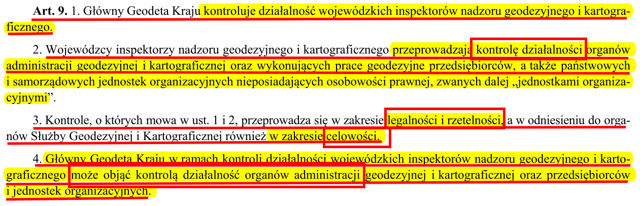 Inną sprawą jest kwestia wykonywania funkcji kontrolnych przez Wojewódzkiego Inspektora Nadzoru Geodezyjnego i Kartograficznego oraz Głównego Geodety Kraju, który może objąć kontrolą działalność dowolnego organu administracji geodezyjnej. Czy te funkcje nadzorcze są wykorzystywane tylko wtedy gdy ktoś ujawni nieprawidłowości działania administracji geodezyjnej? Czy w dobie systemów teleinformatycznych, raportowania zdarzeń, wykorzystywania sztucznej inteligencji itp. działalność kontrolno-nadzorcza ma wyglądać jak w czasach SŁUZBY BEZPIECZEŃSTAW – za sprawą donosów?
