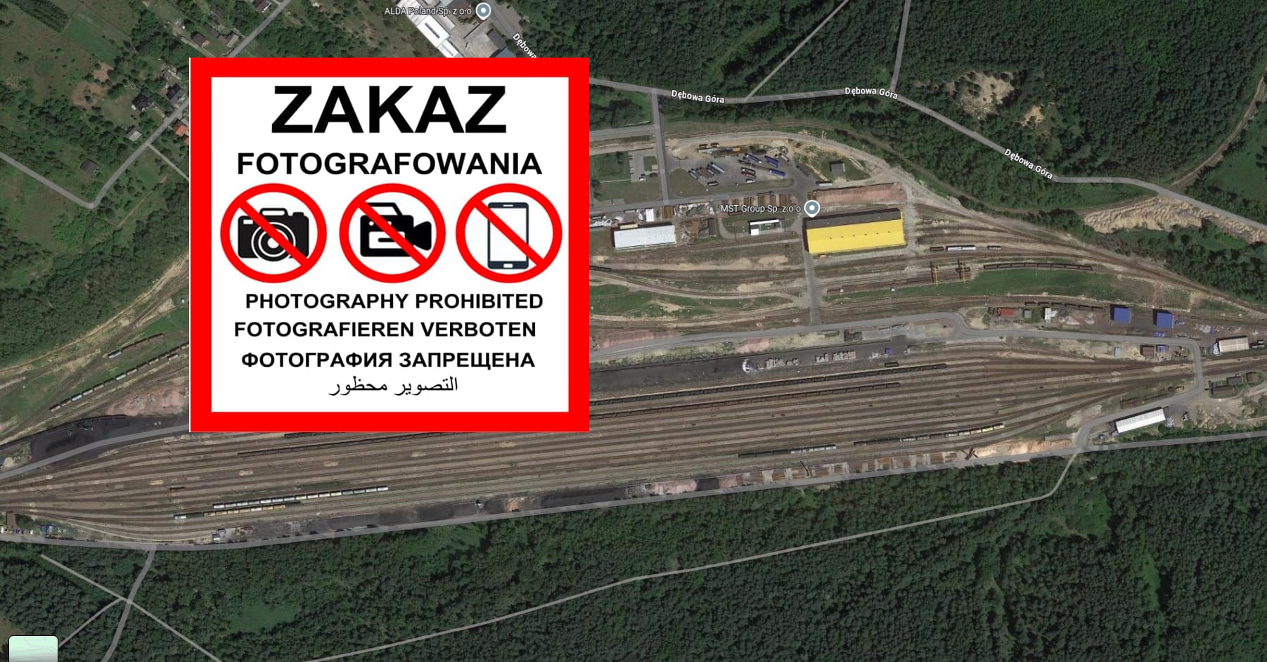 Zakaz fotografowania, filmowania oraz innego utrwalania obrazu i wizerunku dotyczy z ziemi i powietrza.
