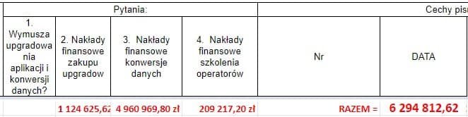 Na 165 powiatów oraz miast na prawach powiatów (w pierwszym roku działania rozp. ws BDOT500 i mz) REALNY I FAKTYCZNY KOSZT TO 6 294 812,62 ZŁ (słownie: sześć milionów dwieście dziewięćdziesiąt cztery tysiące osiemset dwanaście złotych 62 gr)