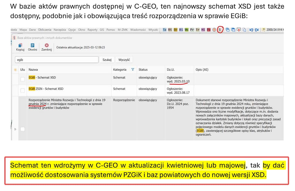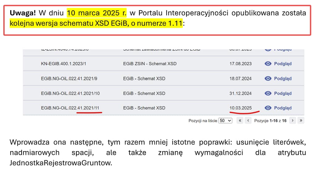 A na Portalu Interoperacyjności mamy 2-gi w tym roku Schemat dla EGiB. Ale dla GUGiK ważniejsze jest pochwalić się – „10.03.2025 O działaniach GUGiK w 2024 r. w rocznym raporcie EuroSDR”