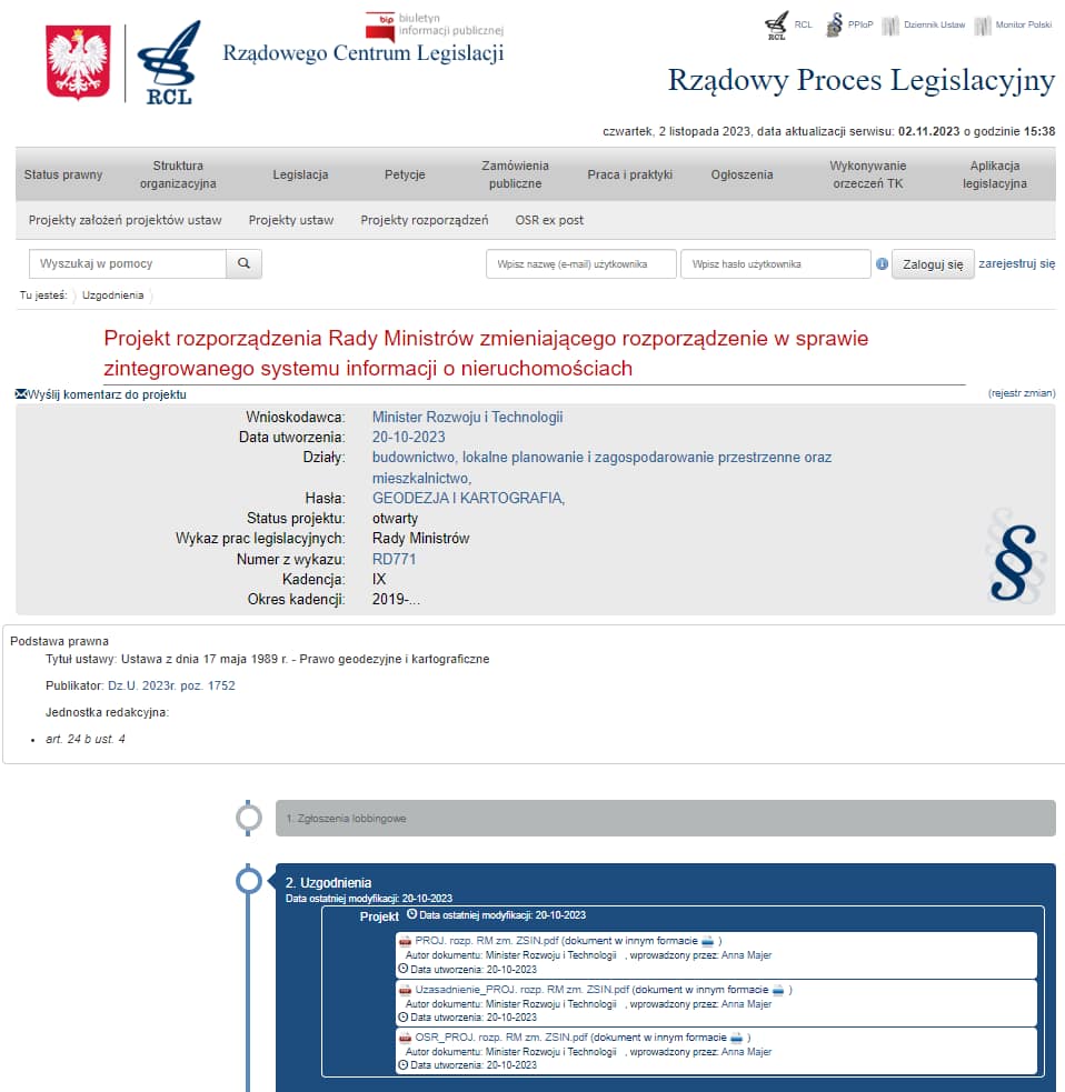 Ostatnim „rzutem na taśmę” a właściwie „poza taśmę” Ministerstwo Rozwoju i Technologii, w 5 dni po sejmowych wyborach, bo w dniu 20 października br. przesłało mailem na biuro@ozzg.pl „projekt” rozporządzenia Rady Ministrów o zmianie rozporządzenia w sprawie zintegrowanego systemu informacji o nieruchomościach, z prośbą o przedstawienie ewentualnego stanowiska Związku do projektu w terminie 14 dni od dnia otrzymania przedmiotowego maila.